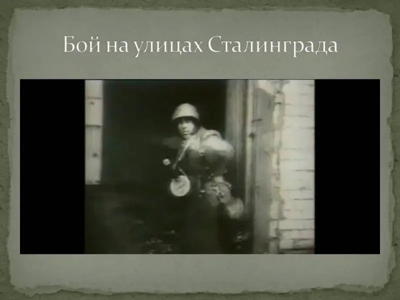 г) Оборона Сталинграда: демонстрируются кадры из фильма (слайд 2).