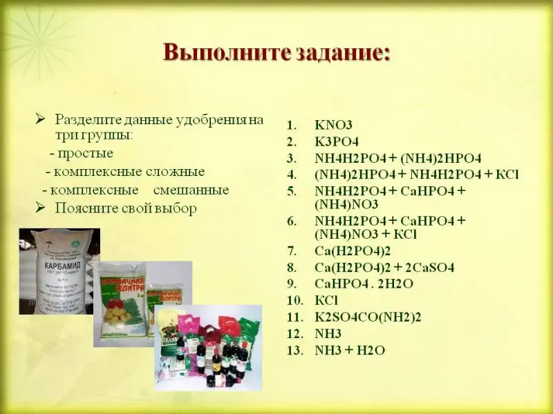 Задание 3: Среди данных удобрений выберите концентрированные: