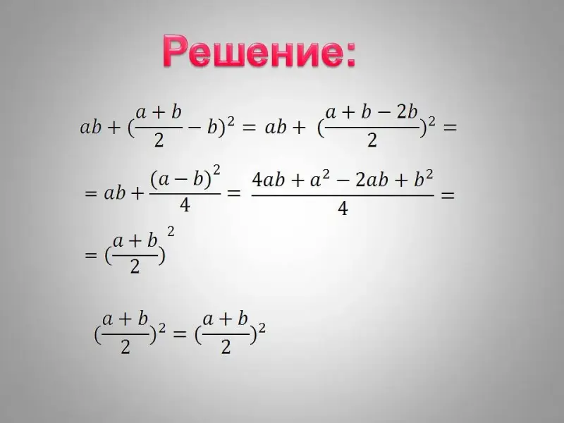 1) Проверить тождество, содержащее в геометрической форме во II книге «Начал» Евклида: