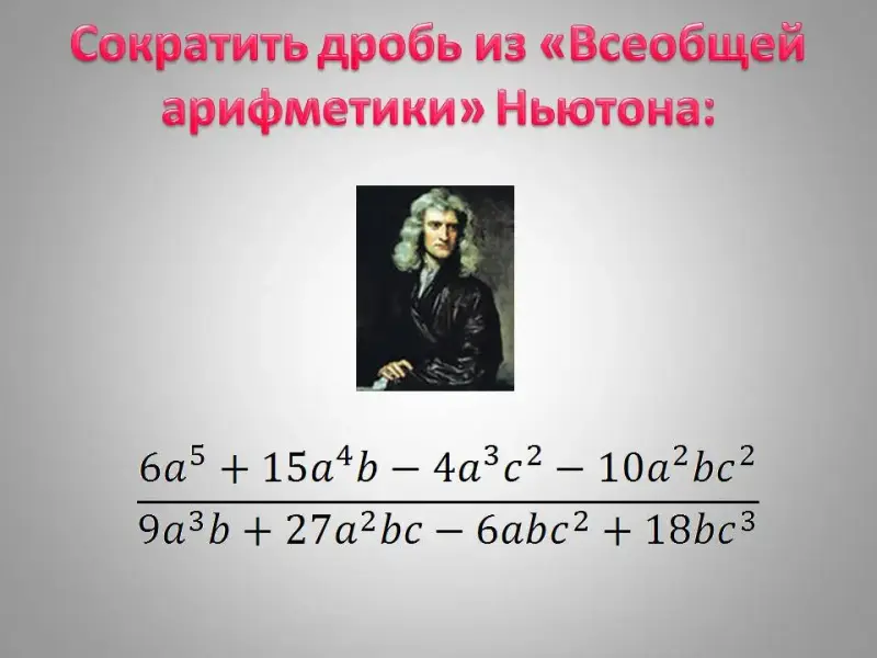 Сократить дробь из «Всеобщей арифметики» Ньютона: