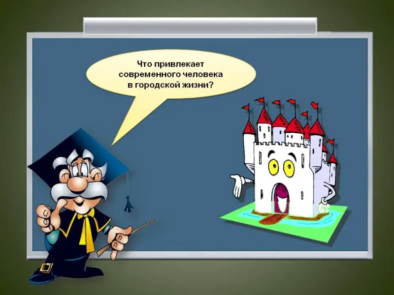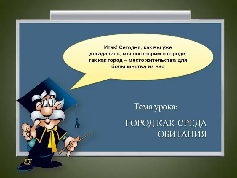 | 7 слайд: Итак! Сегодня, как вы уже догадались, мы поговорим о городе, так как город - место жительства для большинства из нас, наша малая Родина, которую мы с вами должны беречь и сохранять. | Дети записывают в тетрадях тему урока | ||