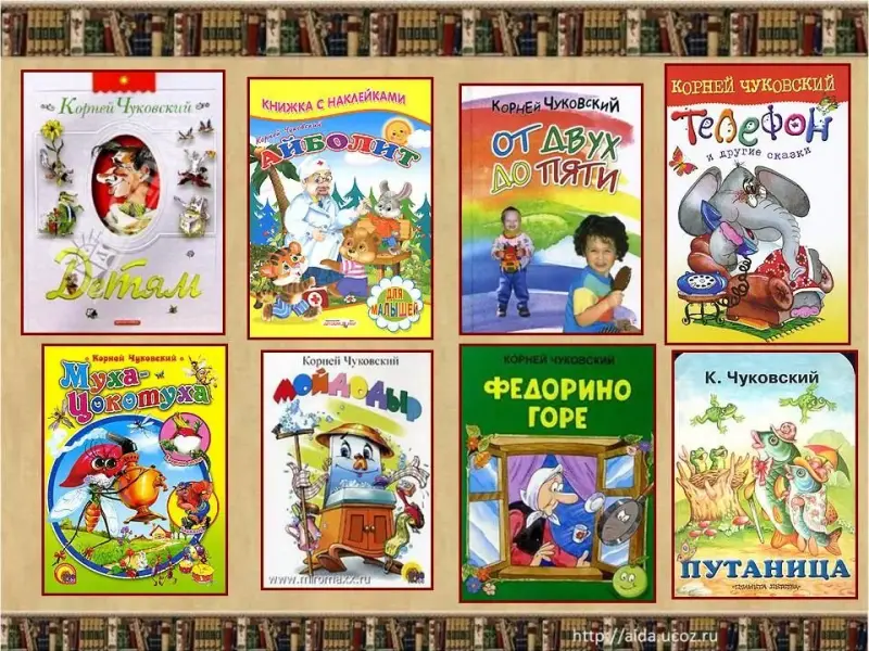 Учитель: У вас на столах карточки, на которых написаны названия произведений Корнея Ивановича Чуковского, прочтите про себя, затем вслух. (Дети читают "цепочкой" стихи).