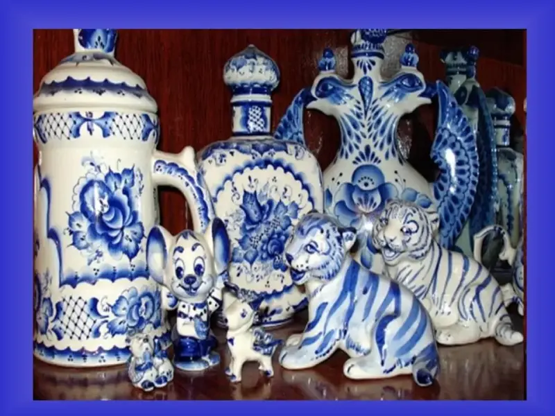 - Сегодня мы совершим путешествие в удивительно красивое место, которое называется Гжель. (Слайд) Слово "Гжель" невероятно популярно, с ним ассоциируется красота и гармония, сказка и быль. Фарфор с нарядной синей росписью и многоцветная майолика известны теперь не только в России, но и далеко за ее пределами.
