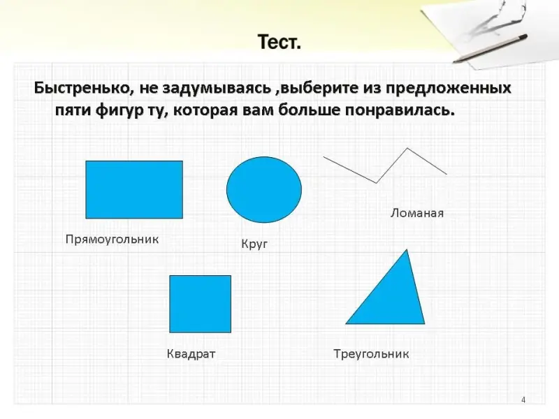 Несерьезный тест. Геометрические фигуры так много знают о нас, значит и нам нужно хорошо их изучить, чем и занимается наука геометрия.
