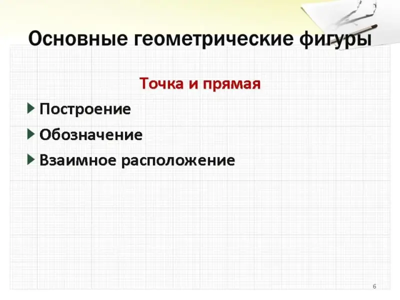 - Образовательная: изучить терминологию, связанную с описание взаимного расположения точек и прямых; научиться изображать и обозначать точки и прямые.
