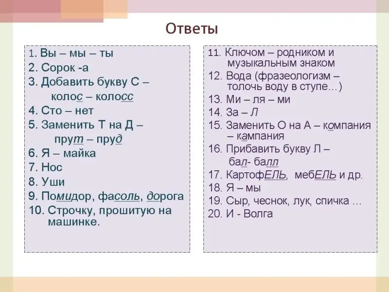 Шутливые лингвистические вопросы.