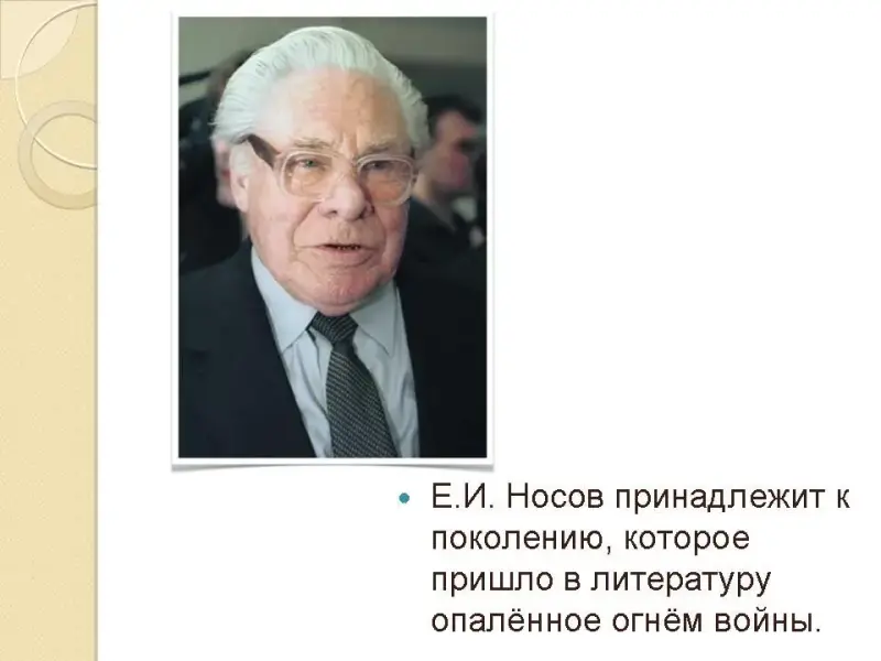 • Знакомство с некоторыми фактами биографии Е.И. Носова, оказавшими влияние на формирование мировоззрения писателя.