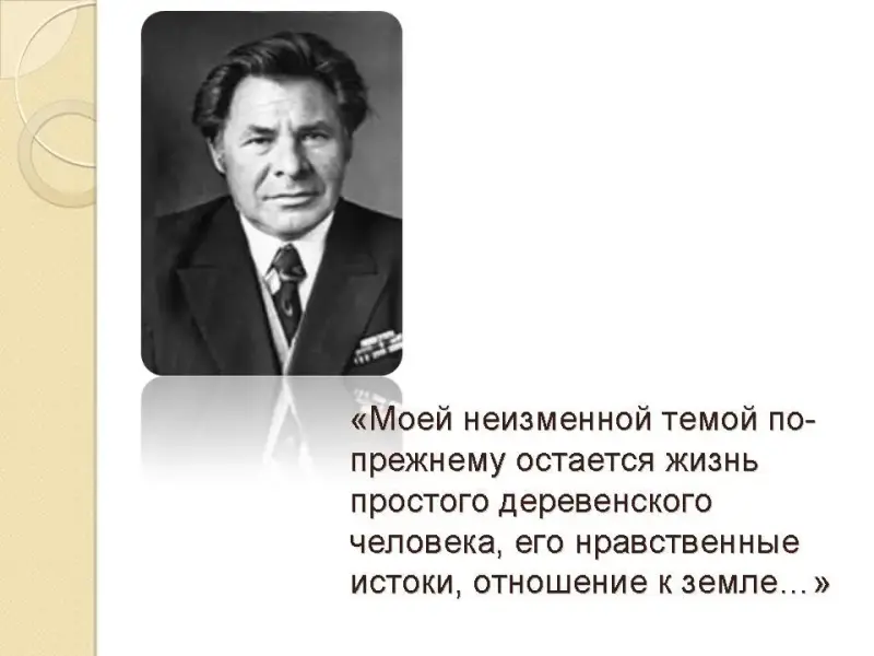 В повести "Усвятские шлемоносцы" (1977) торжественно прозвучала идея защиты Отечества как историческая обязанность русского человека. Незатейлив сюжет повести: усвятскими крестьянами получено известие о Великой Отечественной войне, их сборы, прощание с родными - и дорога на сборный пункт. Все это под пером мастера обретает символическую многомерность, утверждается традиционность, извечность народных представлений о войне и мире, о справедливости. Повесть стала событием в литературной и культурной жизни страны, получила многочисленные критические и читательские отзывы; в 1982 была экранизирована под названием "Родник" (реж. А.Сиренко); в театрах страны успешно прошли постановки спектакля "Усвятские шлемоносцы".