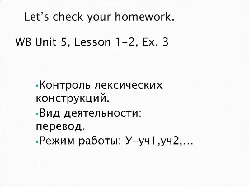Yes, I have/No, I haven't Учащиеся открывают рабочие тетради и проверяют домашнюю работу. |