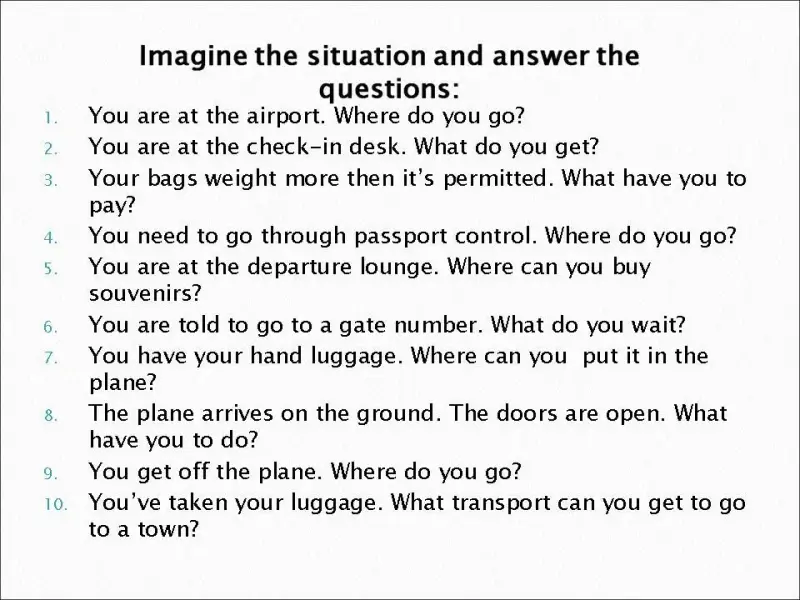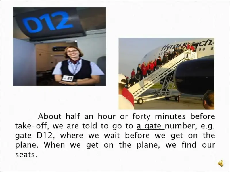 - C помощью презентации, дать представление о путешествии на самолете и научиться ориентироваться в аэропортах.