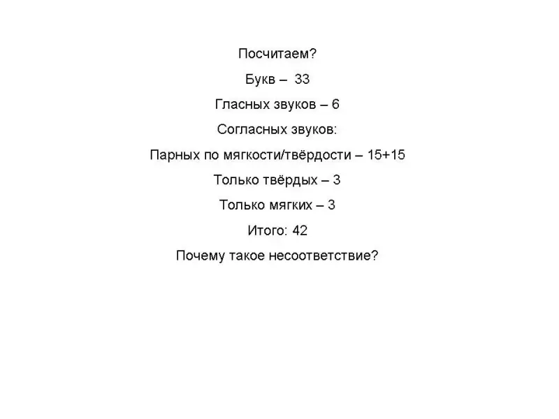 Считаем количество букв и звуков. Возникает проблема, почему не соответствует количество букв и звуков. Организуем мини - исследование, выслушиваем гипотезы.