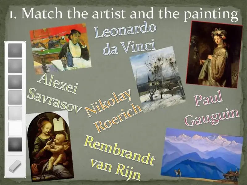 Цель урока: систематизировать и обобщить знания, умения и навыки учащихся по теме "Art", повысить мотивацию к изучению английского языка.