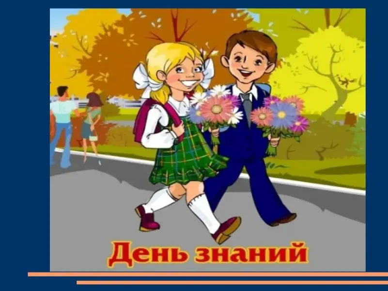 - Сегодня у нас большой праздник - День Знаний. Вы собрались на первый школьный урок, чтобы познакомится со своей школой, со мной, вашей первой учительницей, и узнать своих будущих одноклассников. Меня зовут Марина Альбертовна.