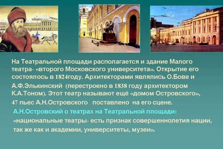 После войны 1812 г. Москва и Петербург подверглись детальной перестройке. В Петербурге сформировались Дворцовая и Сенатская площади, в Москве - Театральная.