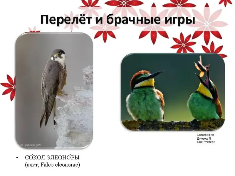 - Самец, какой птицы, ухаживая за самкой исполняя танец с насекомым в клюве (щурка)