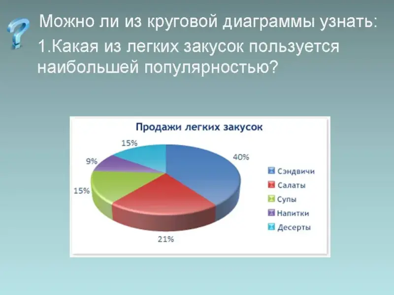 Ученики знакомятся с видами диаграмм и отвечают на вопросы (Презентация).
