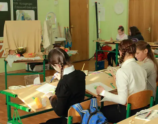 Проводится обсуждение, анализ выполненных работ. Ребята демонстрируют свои рисунки, высказывают свое мнение по поводу живописного решения натюрморта.