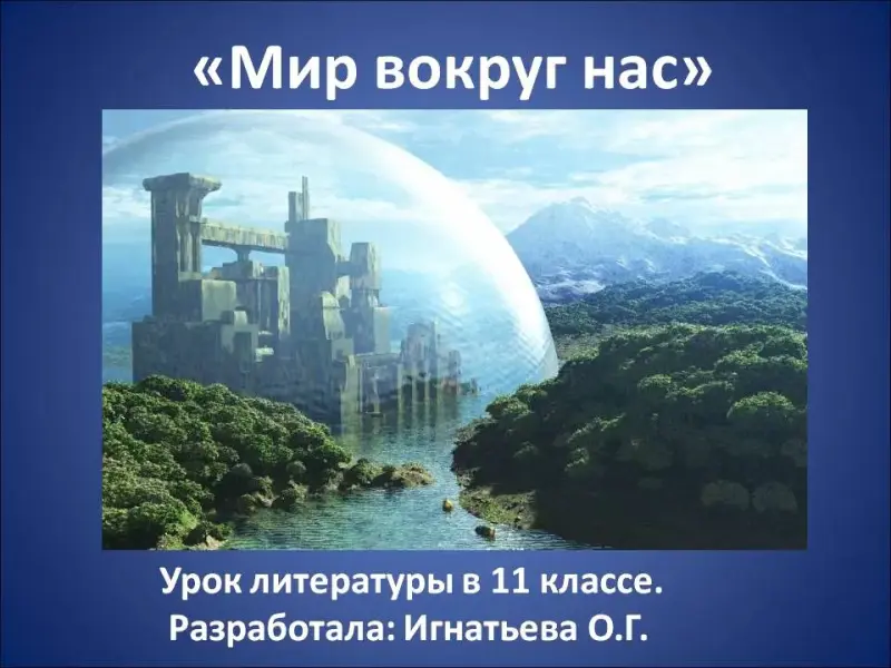 На доске: портреты О. Хаксли, Дж. Оруэлла, Шекспира и Е. Замятина; записана тема урока: «Мир вокруг нас». Раздаточный материал.
