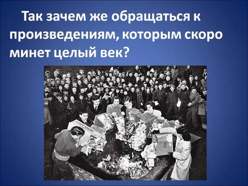 Вопрос учителя: Так зачем же обращаться к произведениям, которым скоро минет целый век? (Слайд 38)