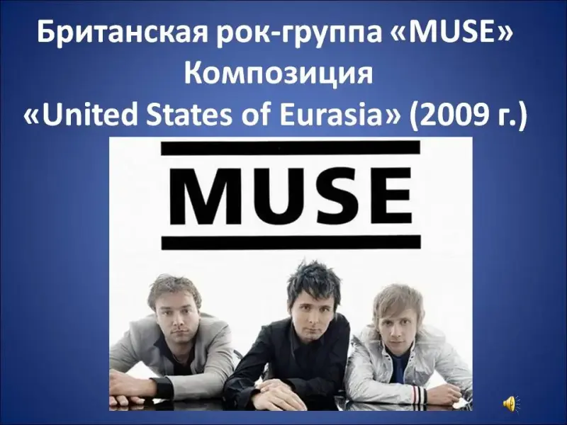 Интересно отметить, что под влиянием романов Хаксли и Оруэлла были сняты фильмы и написаны музыкальные произведения. Например, известной британской рок-группа «Muse» принадлежит композиция «United States of Eurasia» (2009 г.), которая является прямой аллюзией к роману Оруэлла «1984» (Слайд 39-40).
