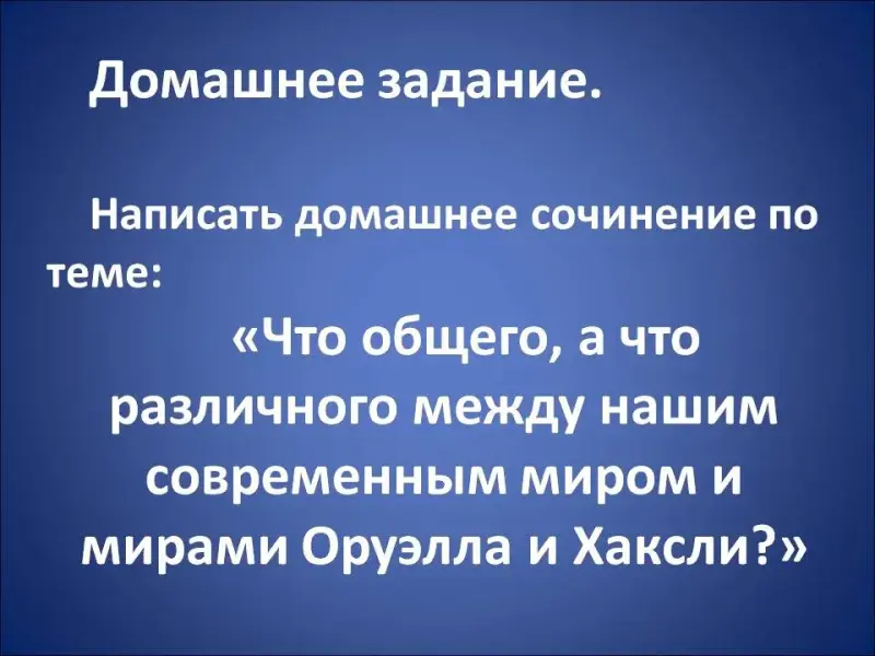 «Что общего, а что различного между нашим современным миром и фантастическими мирами Хаксли и Оруэлла?»