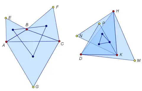 - Каков вид треугольника, вершинами которого являются центры построенных равносторонних треугольников.