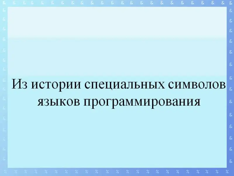 Для иллюстрации представленных идей, нами разработано внеклассное мероприятие «Специальные символы языка программирования» и Презентация к нему, которое посвящено истории возникновения некоторых часто используемых символов в программировании и их применению в процессе решения учебных задач.