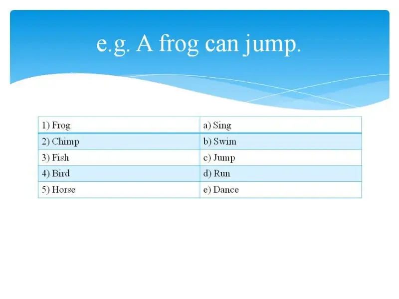 e.g. A frog can jump.