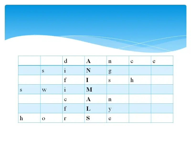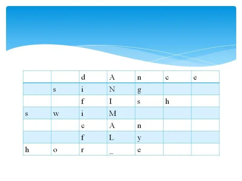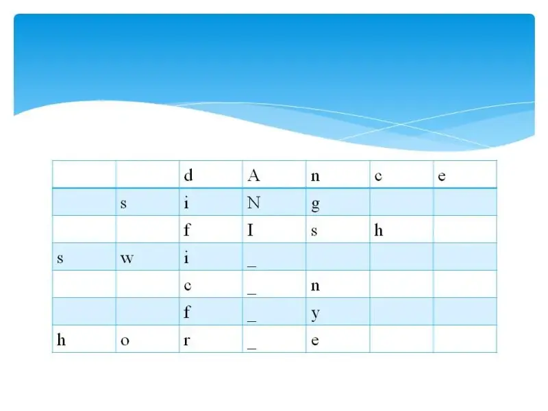 Key: dAnce siNg fIsh swiM cAn fLy horSe