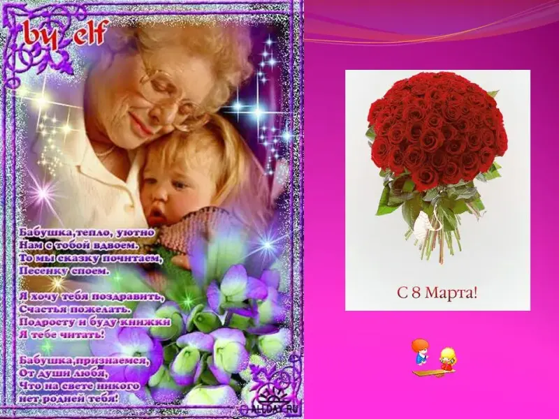 Учитель. А всегда ли вы дружно живете со своими бабушками? Иногда ваши поступки, поведение, слова больно ранят пожилых людей. Послушайте стихотворение Нины Дергач «Бабушкин выходной».