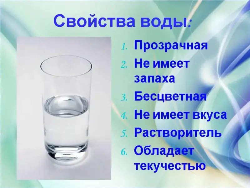 Что мы знаем о воде? Давайте вспомним основные свойства воды. (На партах стакан с водой.)