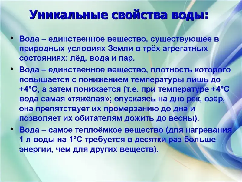 - Приводить примеры значения воды для жизни на Земле и для человека