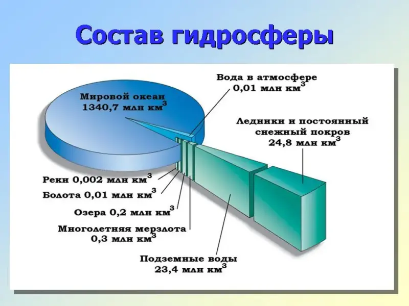 Основную часть гидросферы составляет Мировой океан.