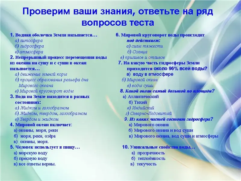 Слайд 34. Проверим ваши знания, ответьте на ряд вопросов теста.
