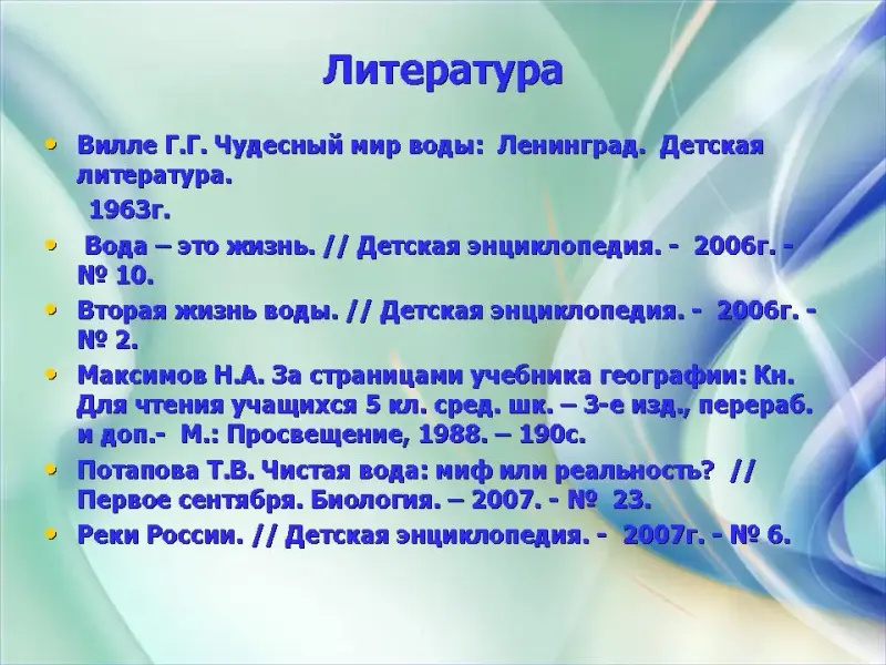 Выводы: В ходе исследования мы расширили свои знания о воде, познакомились с причинами загрязнения водоемов и мерами их охраны, научились бережно относиться к воде и экономить ее.