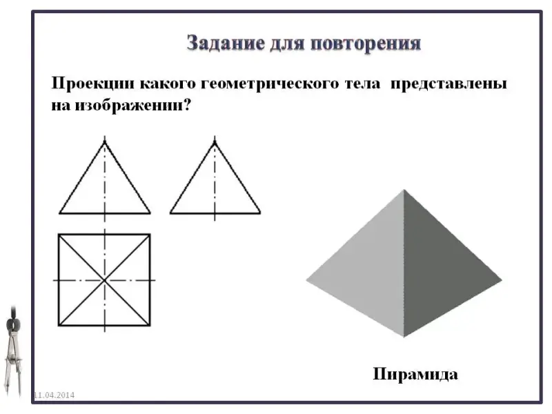 Большинство предметов можно представить как сочетание геометрических тел. Для чтения и выполнения чертежей необходимо знать, как изображаются эти геометрические тела, что мы сегодня и повторили (Слайды 5, 6, 7, 8)