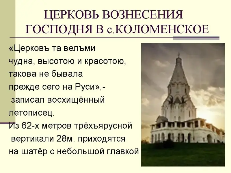 Слайд Церковь Вознесения Господня в Коломенском