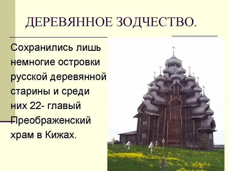 Слайд. Восьмое чудо света. Преображенская церковь в Кижах.