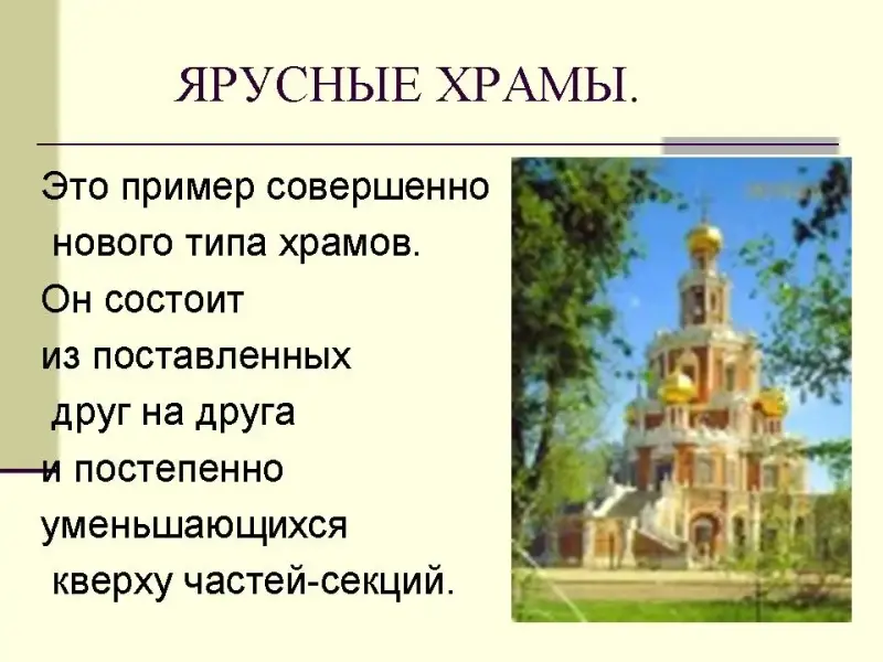 - Понаблюдать за развитием зодчества на Руси в период с 10 по 17 века, а также познакомиться с типами русских православных храмов.