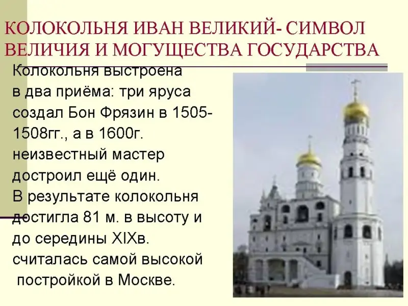 Слайд Колокольня Иван Великий - символ величия и могущества государства.
