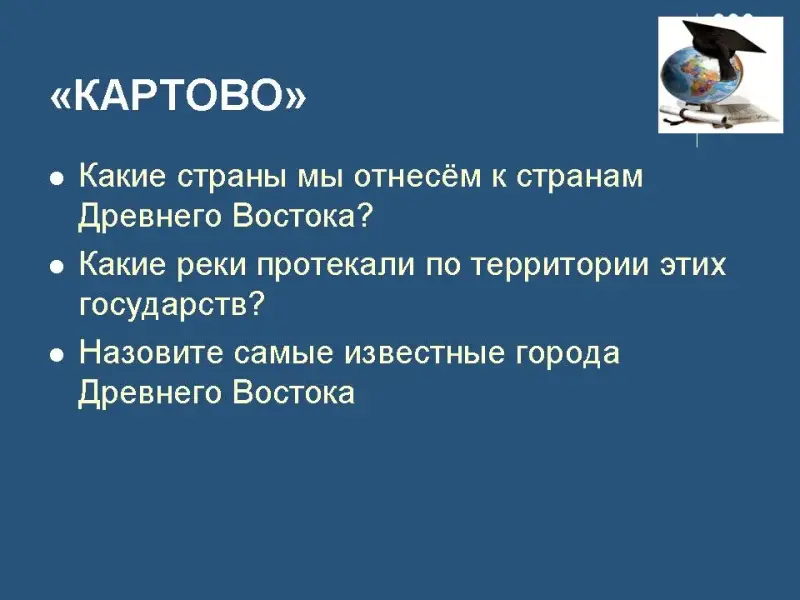 - Воспитывать у обучающихся уважение к истории, традициям, культуре народов Древнего Востока.