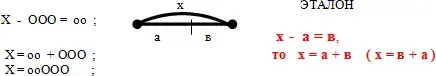 3. Выявление места и причины затруднения. - Чтобы взяться за новое (сделать 2-ой шаг), что нужно предварительно сделать? (воспользоваться старыми знаниями) - Посмотрим на 1 уравнение, пользуясь эталоном, найдем значение -х. (на доске прикрепляем эталон, который подходит к уравнению х + 1 = 5) - Какой эталон? Нахождение чего? (части, 1 слагаемого) - Как найдем корень уравнения? (4) - К уравнению 9 - х = 4 - какой эталон? Нахождение чего? (части, вычитаемого) Корень уравнения? (5) - Уравнение х - 2 = 7. Что нового в нем? (всегда находили ЧАСТИ, здесь нужно найти ЦЕЛОЕ) - Мы знаем способ решения таких уравнений? (да, нет) Ч + Ч = Ц - Как называется компонент, который нужно найти? (уменьшаемое) - Теперь попробуем более четко сформулировать тему урока: РЕШЕНИЕ УРАВНЕНИЙ С НЕИЗВЕСТНЫМ УМЕНЬШАЕМЫМ. |
