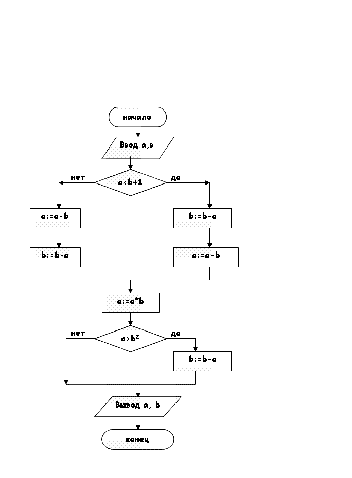 Задание №4. Составить трассировочную таблицу для алгоритма при a=13, b=12. Каков результат? (рис.4)