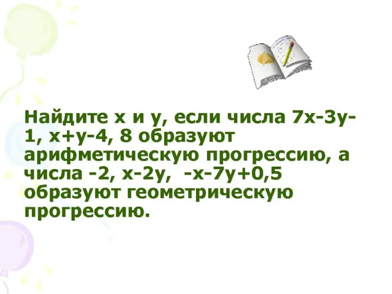 Разные математические понятия применяются при выполнении различных видов заданий. Следующее задание позволит увидеть, как связаны уравнения и прогрессия.
