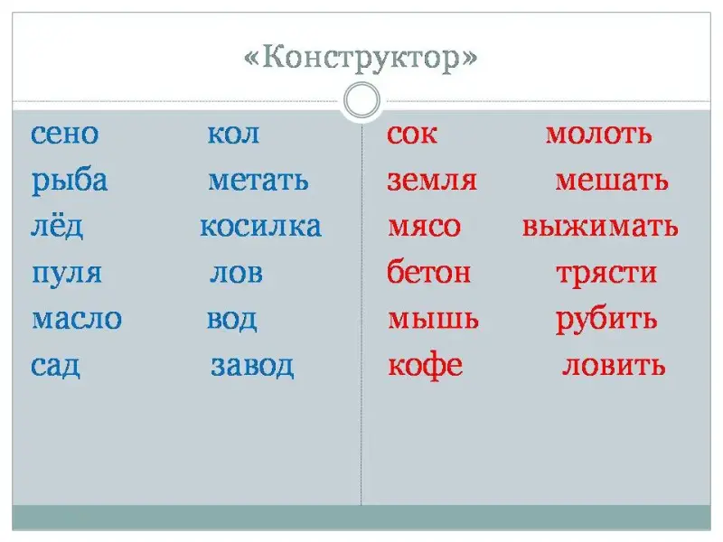 мешать выжимать трясти рубить ловить |