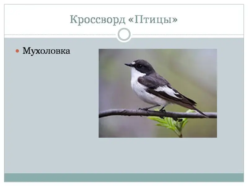 - Эта птица получила свое название за поведение. Она всегда ловит мух. (Мухоловка)