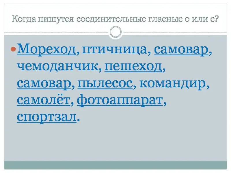 - Как можно назвать гласные о и е соединяющие основы? (соединительные)