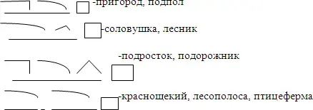 - Выпишите слова по группам в соответствии с данными схемами (работа в паре). Схемы слов в учебнике и на доске.