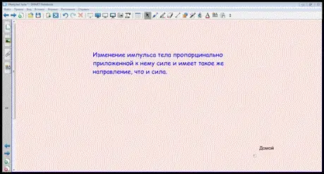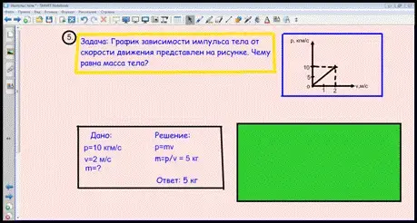 Появляется табличка с указанием единицы измерения импульса тела.