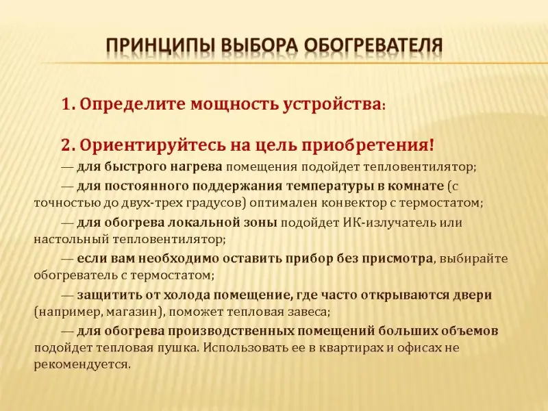 Принципы выбора обогревателя (слайд 17)